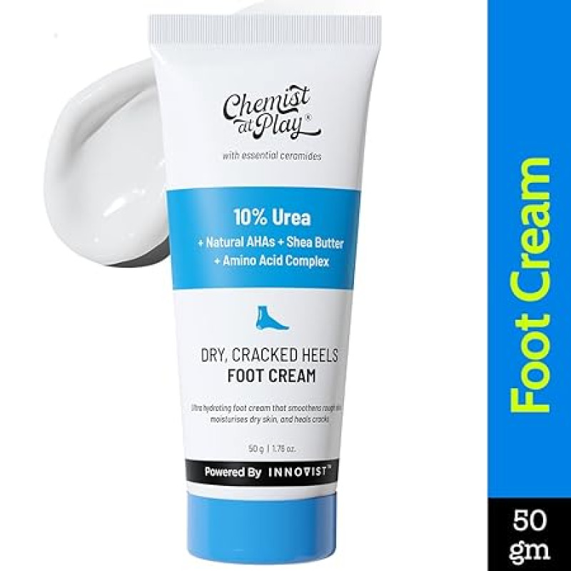 Chemist at Play Foot Cream for Cracked Heels & Diabetic Foot | Up to 24 hours of Moisturization | 10% Urea & Natural AHAs | Nourishment & Hydration | For Dry & Cracked Feet | Lightweight | 50g