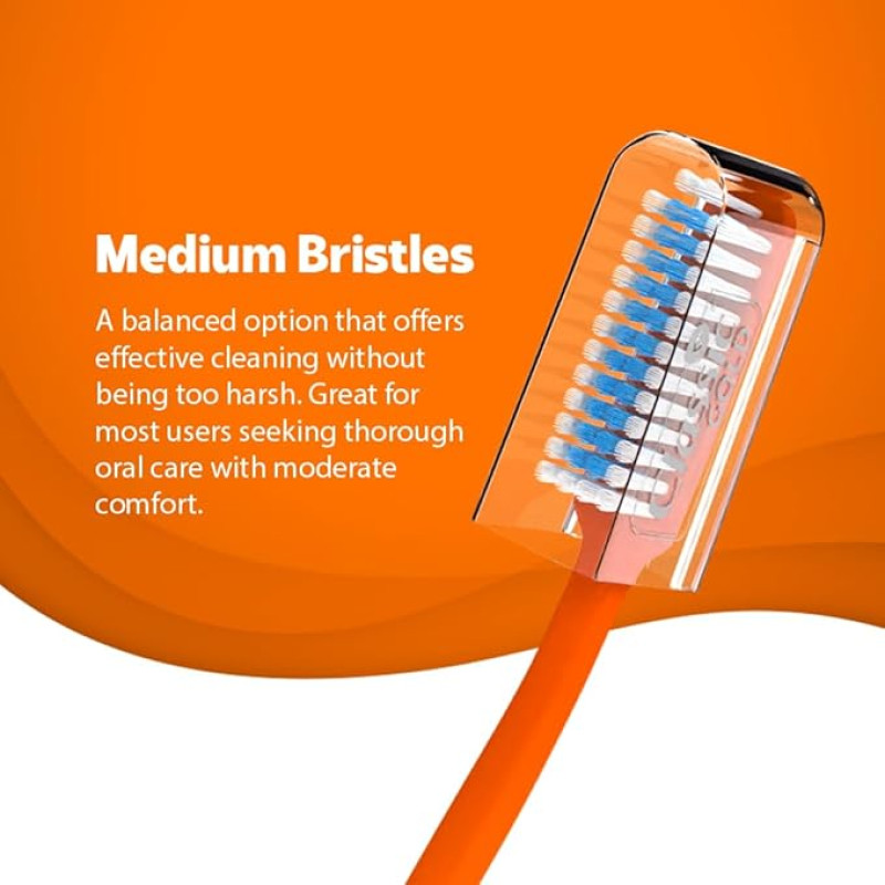 Classic Gold Supreme Medium Manual Toothbrush For Adults | With Dupont Tynex Bristles and Crystal Clear Anti Bacterial Cap | Pack of 12 Pieces - Multicolor