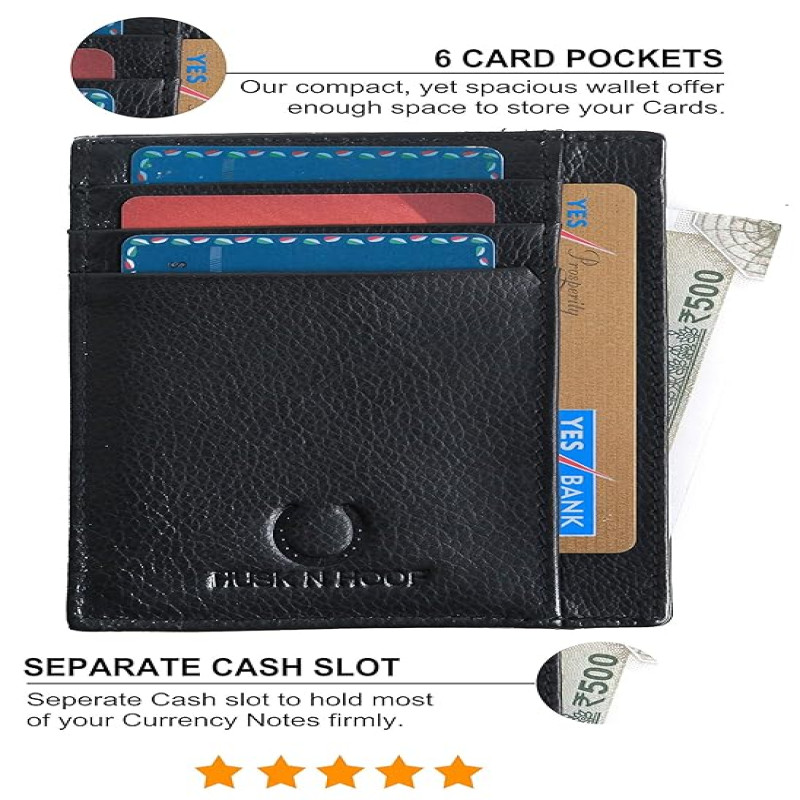 Click to see full view Husk N Hoof RFID Protected Leather Credit Card Holder Wallet for Man Women | Card Holder for Men Woman | Black