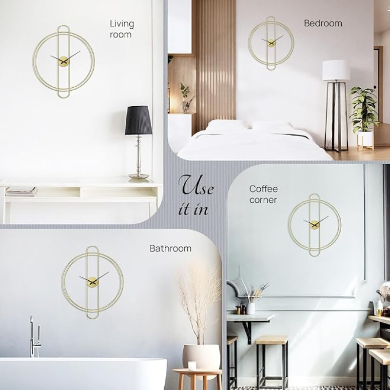 Click to see full view nestroots Large Metallic Analog Wall Clock for Living Room & Bedroom | 24-Inch Decorative Wall Clock for Hall, Office & Home Décor | Golden Frosted Modern Design