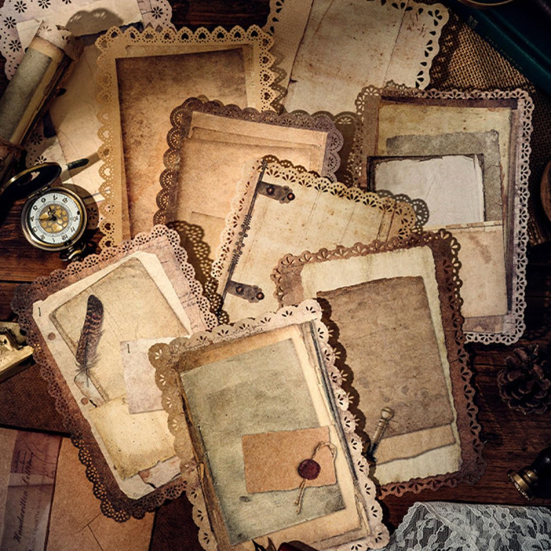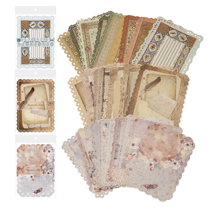 Climberty® 30 Sheet Vintage Scrapbooking Papers Fancy Journaling Papers Letter Papers, Cutout Lace Edge Decorative Paper Sheets for Writing, DIY Crafts, Collage, & Card Making, 125x175mm