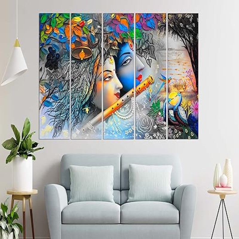 CN RETAILS Multiple Frames, Wall art Radha krishna Painting for home decor Living Room, Bedroom, Office, Hotels Wooden Framed Digital Painting (50inch x 30inch) mf531