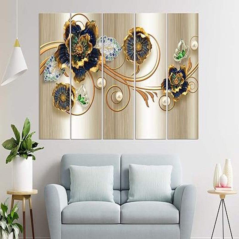 CN RETAILS Set Of 5 Wall Painting multiple Frame For Home Decoration, Living Room, Spa, Office, Hotel Big Size Wall Decor (50inch x 30inch,big size, Multicolour) mf481,Engineered Wood;Vinyl