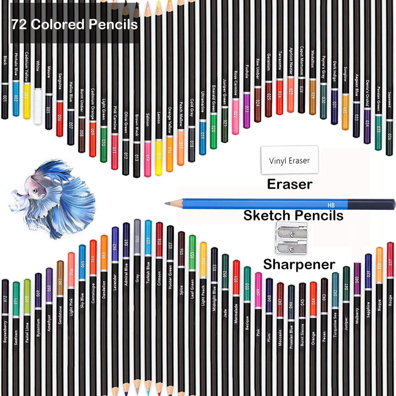 - 【PACKAGE INCLUDE】: Colour Pencils Set 72 colours pencils, 1 Sketch Pencil, 1 Eraser, 1 Sharpener, 1 Sketch Book, 1 Cylinder case ,A professional set of coloured pencils, perfect gift for artist, family, friend, daughter, student, traveling, beginners, valentines day, mother's day, Christmas, new year, birthday, Halloween.