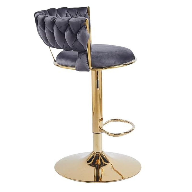 Creative Bar/Kitchen Chairs 360 Degree Rotatable Swivel Elegant Classy & Comfortable Chair with Golden Base and Velvet Fabric (Pack of 2) (Grey)