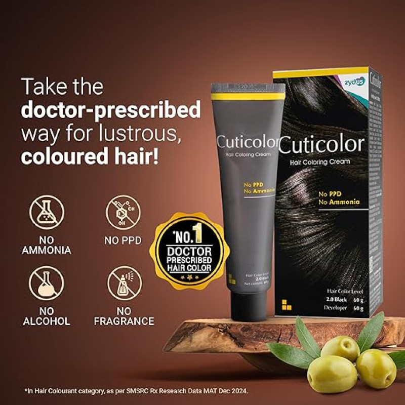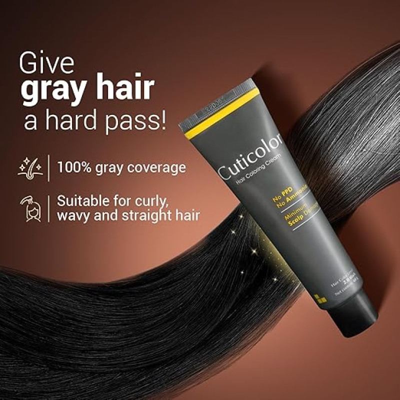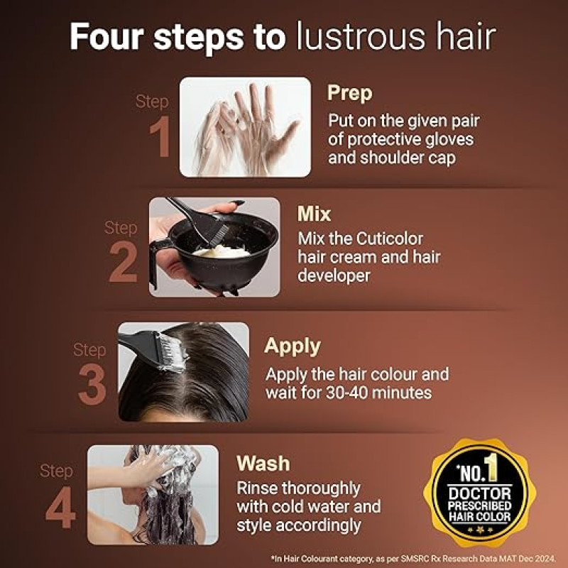 Cuticolor Permanent Hair Color Cream|#1 Dr Prescribed|For Sensitive Skin|Eco Mechanism For Preserving Scalp Health|Enriched With Portulaca & Boseivela Extracts (Dark Brown,60G (Pack Of 1)),1 Count