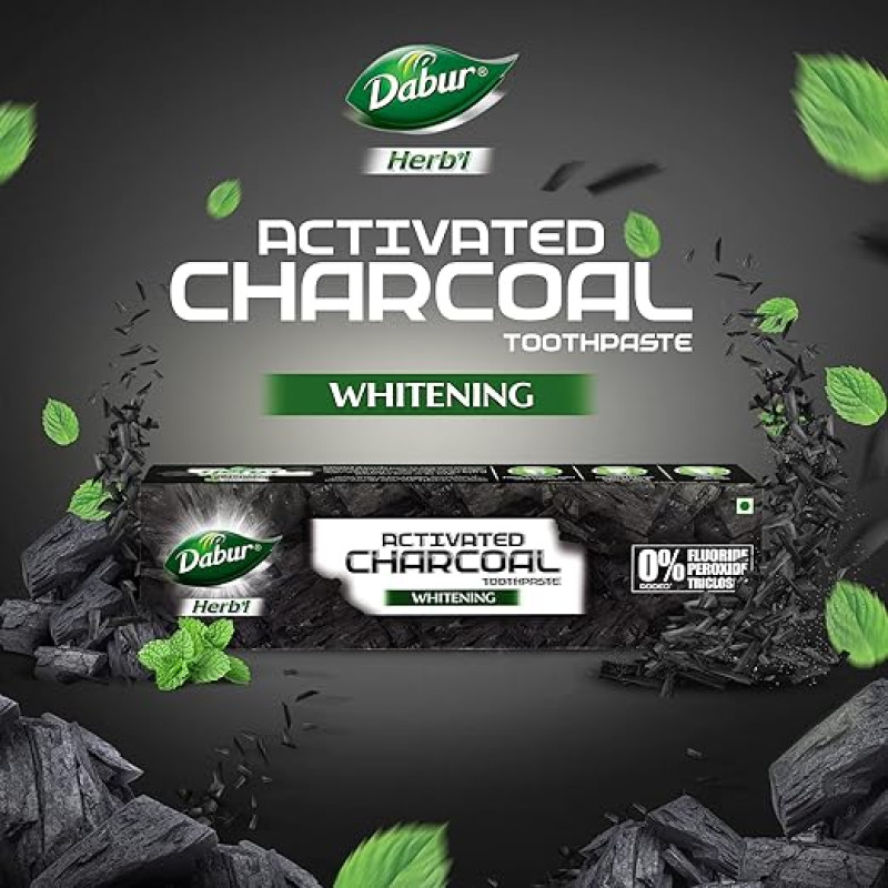 DABUR Herb'L Activated Charcoal Toothpaste-240G (120Gx2,Pack Of 2)|Black Gel Toothpaste|Whitening |Fluoride Free|Fights Plaque&Extrinsic Stains|With Power Of Mint|Cool&Refreshing Mouth Experience