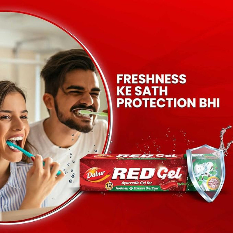 Dabur Red Gel Ayurvedic Toothpaste - 600g (150g x 4) | Reduction in Bad Breath, Plaque & Gingivitis | Freshness with Protection | For Healthy Gums & Effective Dental Care