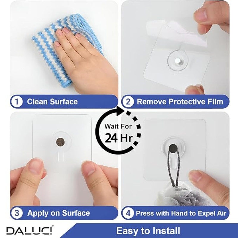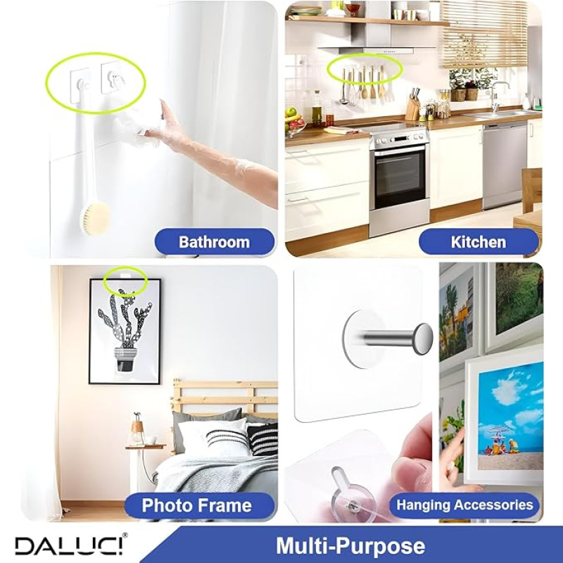 DALUCI Self Adhesive Wall Hooks (5 Pack) – Photo Frame Hooks for Wall Heavy Items Without Drilling | Heavy Duty Sticky Hanger Hook Nail Free Wall Hooks for Hanging Clocks & Keys (Photo Frame Hook, 5)