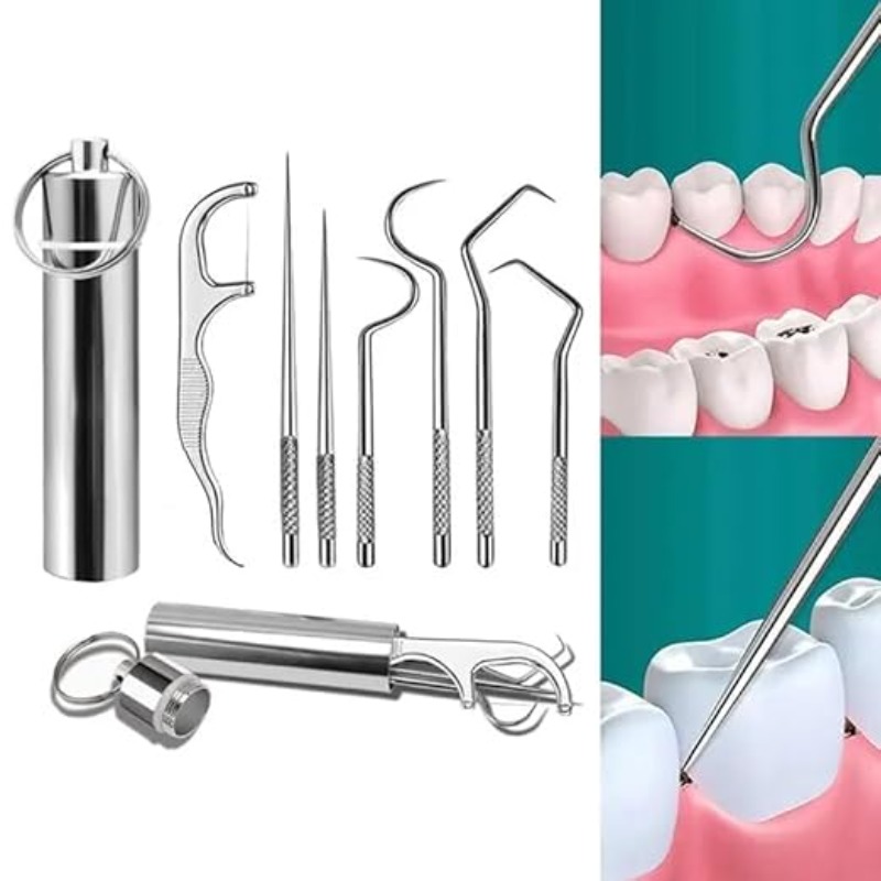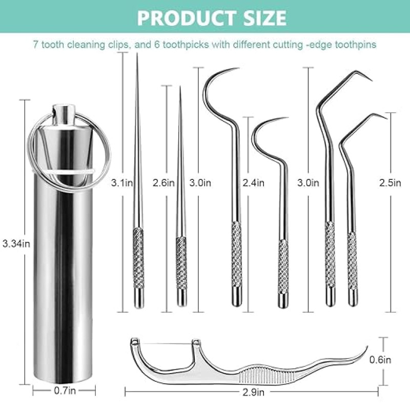 Dental Tools, 7 in 1 Stainless Steel Teeth Cleaning Tool Kit, Stainless Steel Toothpicks Teeth Cleaning Picks Flosser for Teeth Braces Cleaning Tools Reuseable Toothpicks Oral Care