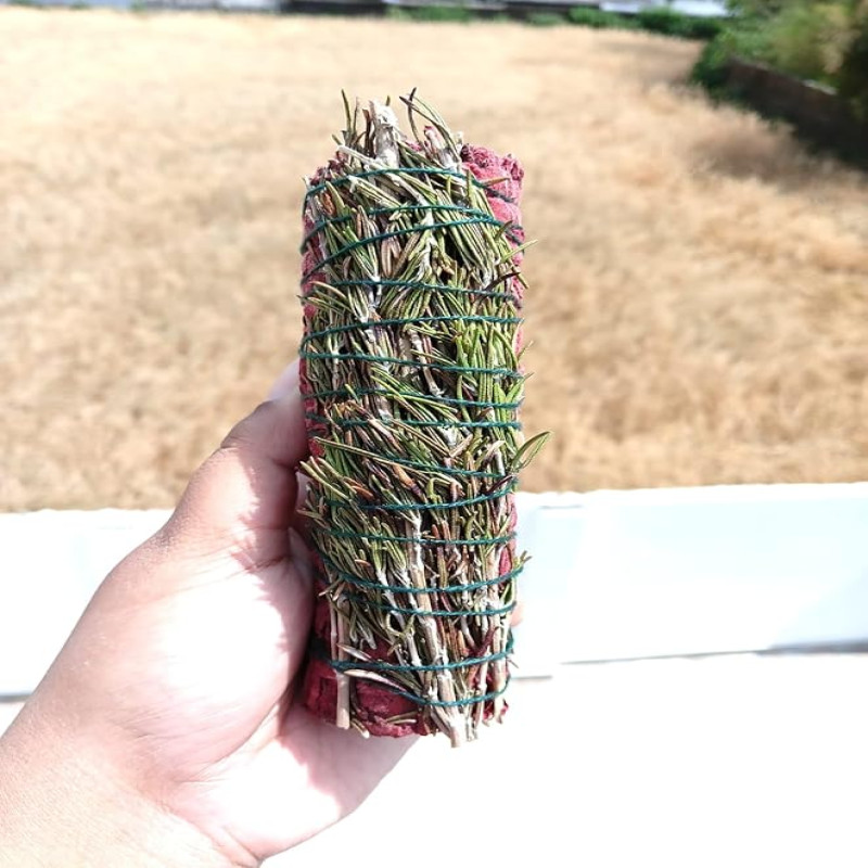 - Triple Herbal Power - This smudge stick combines three powerful botanicals—Himalayan Sage for purification, Dragon’s Blood resin for protection, and Rosemary for mental clarity and vitality. Together, they form a well-balanced blend that cleanses, empowers, and uplifts your energy field and sacred spaces.