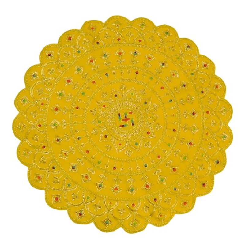 Divineaasan Pooja Aasan for Mandir Home Temple Idol Placement | Velvet Designer Puja Altar Cloth Mat Home Office Base Chowki | Festivals & Daily Rituals (65 cm, Yellow)