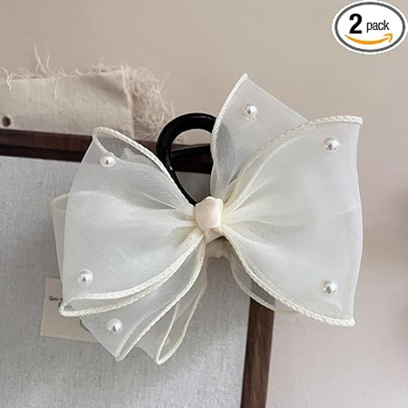 DORMITORRY Bow Hair Claw - 2 pcs, Multicolor, Medium to Thick Hair, Women's Hair Accessory, Satin Silky Bow, Juda Claw