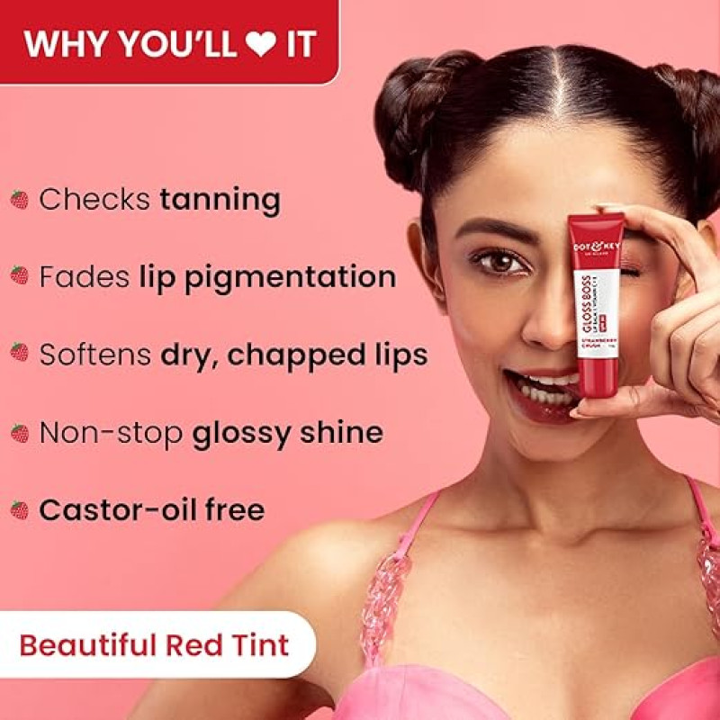 Dot & Key Strawberry Lip Balm (12gm) for Moisturization | Soft and Naturally Brightens Lips |Tinted Lip Balm with SPF 50 & Vitamin C + E | Lipbalm for Dry & Dark Lips | For Women