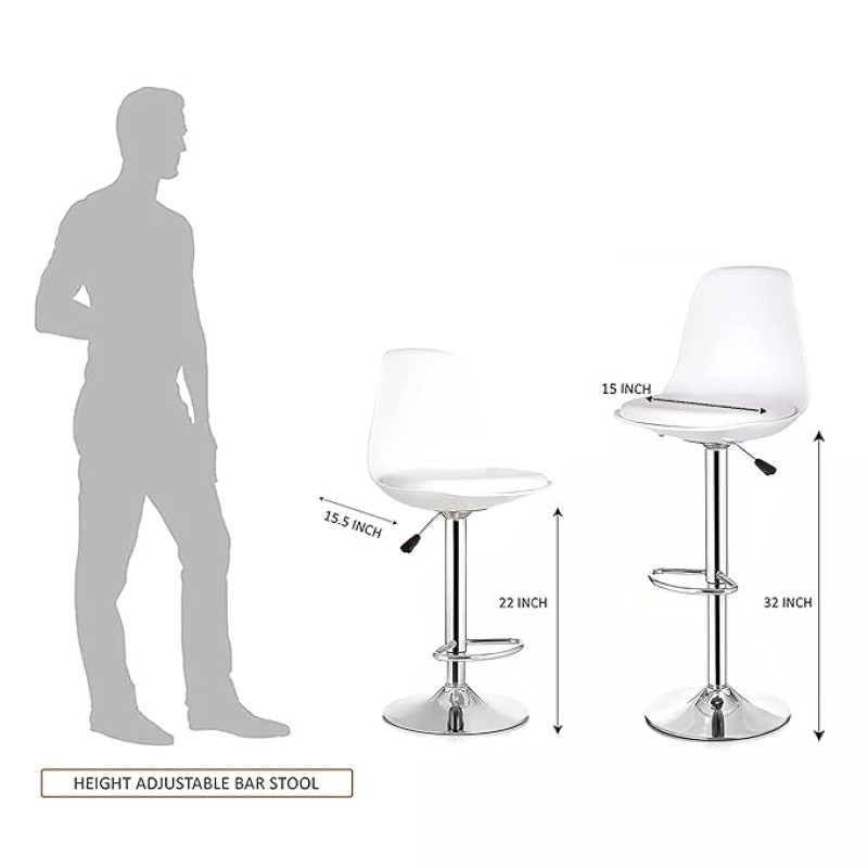 DPI® Modern Height Adjustable and 360 Degree Revolving Bar Stool | Kitchen Chair Suitable for Kitchen Cafeteria Dining Office Shops | (1, White)