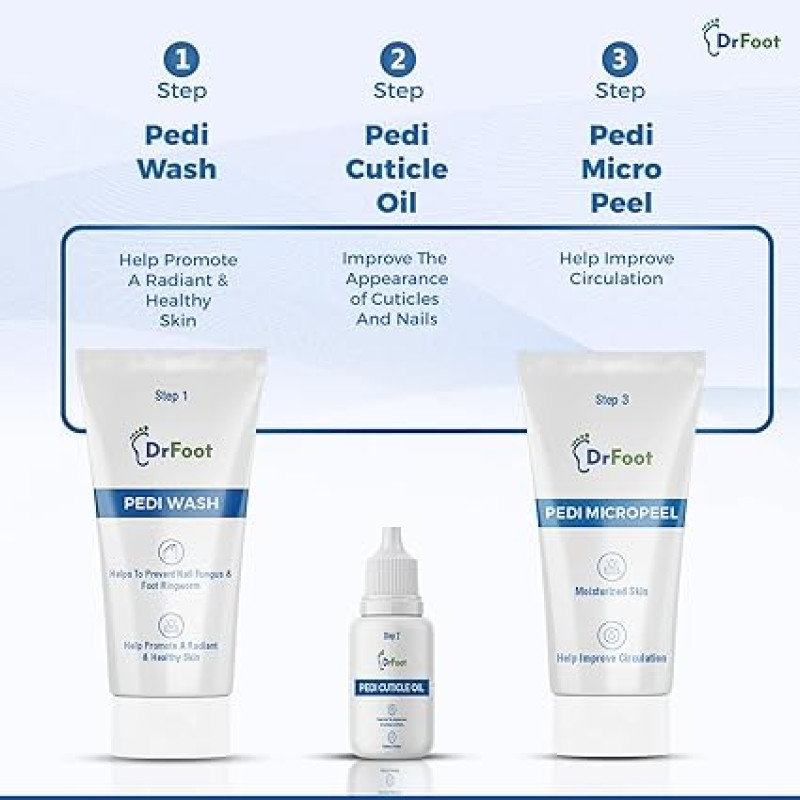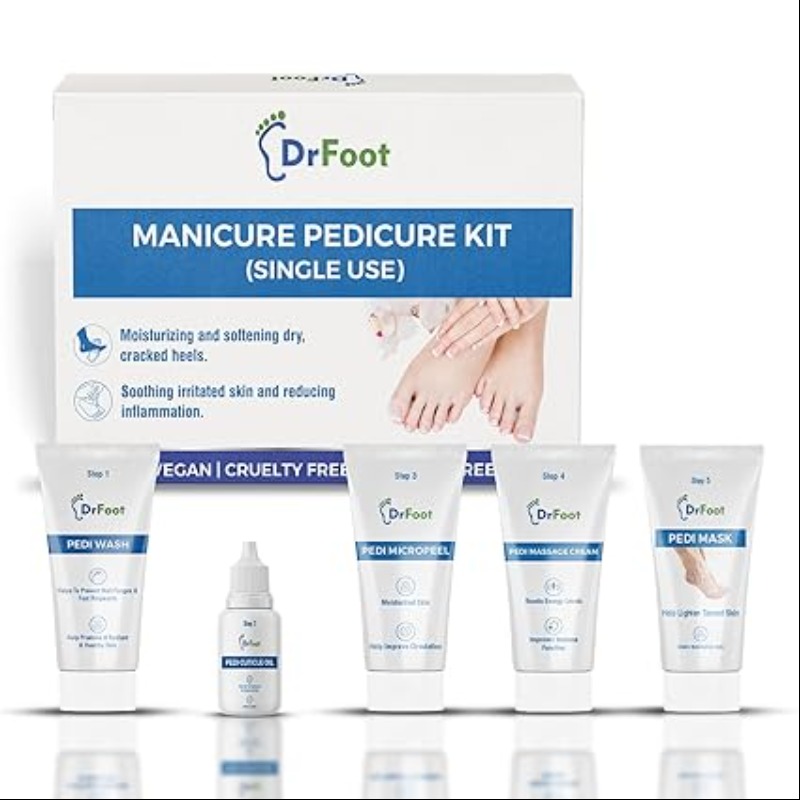 Dr Foot Manicure Pedicure Kit | For Brightens and smoothens skin | Pedi Wash-8 gm | Cuticle Oil-10 ml | Micropeel-8 gm | Massage Cream-8 gm | Pedi Mask-8gm