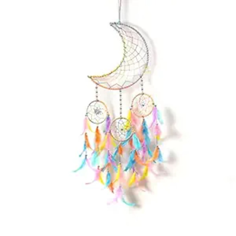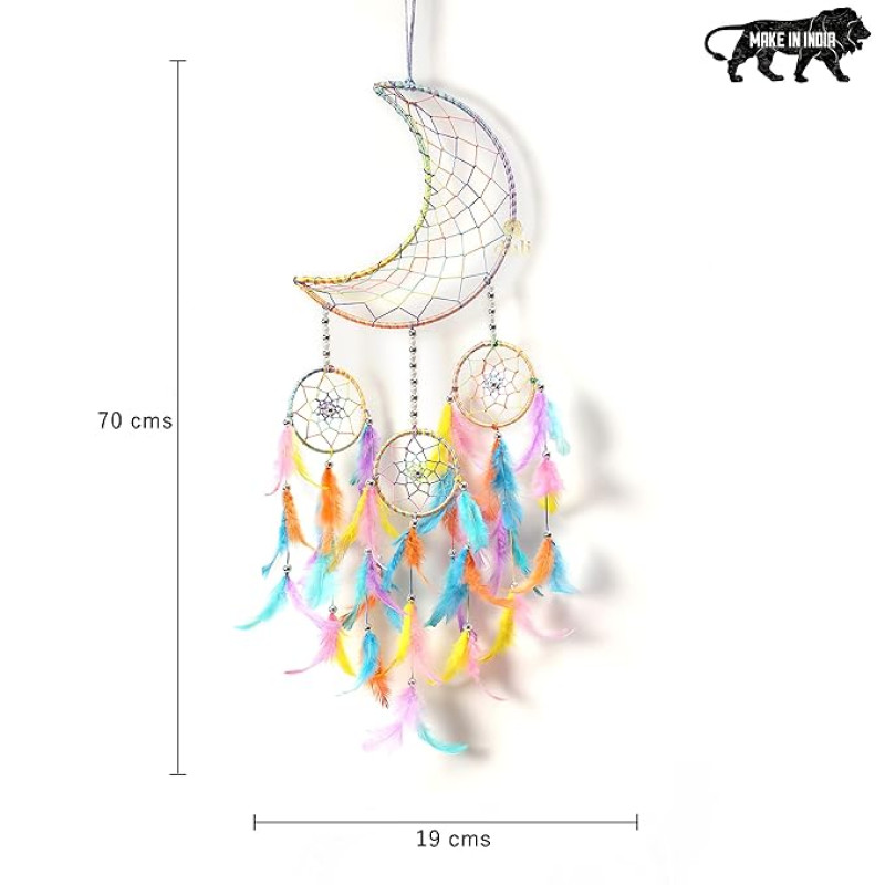 DULI Stainless Steel Moon Shape Dream Catcher Half Moon Home Decor Wall Hanging Bedroom Best for Gifts and Decoration, Wall Art for Bedrooms, Home Wall(CrescentMoonDC: PastelMulti)