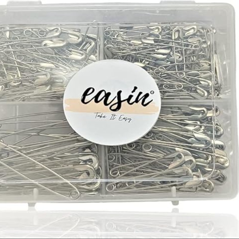 easin Safety Pins Mixed Assorted for Women & Girls Used in Saree Earrings Necklace Organizer Brooch Pins, Different Sizes (1,2,3,4) Heavy Standard Stainless Steel with Reusable Partition Box