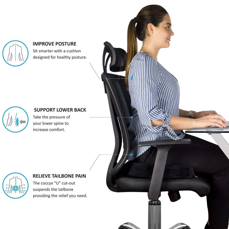 Eder Care Doctor Recommended Coccyx Seat Cushion for Tailbone Pain Relief,Sciatica Pain Relief,Hip Support,Lower Back Support - Orthopedic Foam Chair Cushions for Sitting with Removable Cover. - Blue