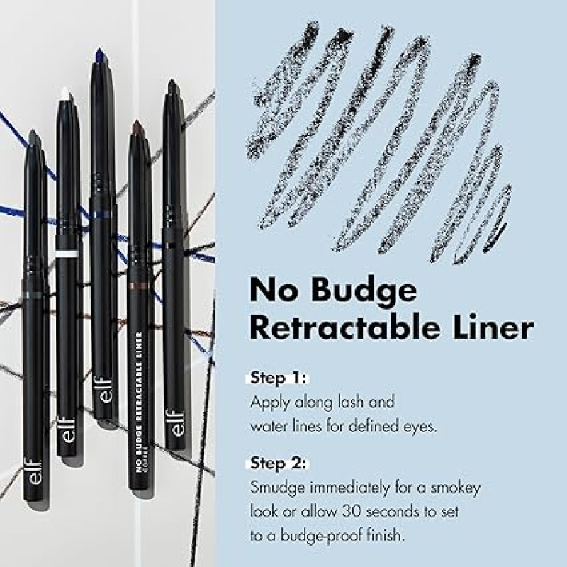e.l.f. No Budge Retractable Eyeliner, Creamy, Ultra-Pigmented & Waterproof, Creates Bold & Defined Lines, Vegan & Cruelty-Free, Black