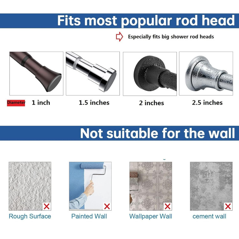 ELMVIA QARB Transparent PVC No Drill Curtain Rod Brackets Self Adhesive Curtain Rod Holder Hooks Nail Free Adjustable Curtain Rod Hooks for Bathroom Kitchen Home Bathroom and Hotel (4PCS)