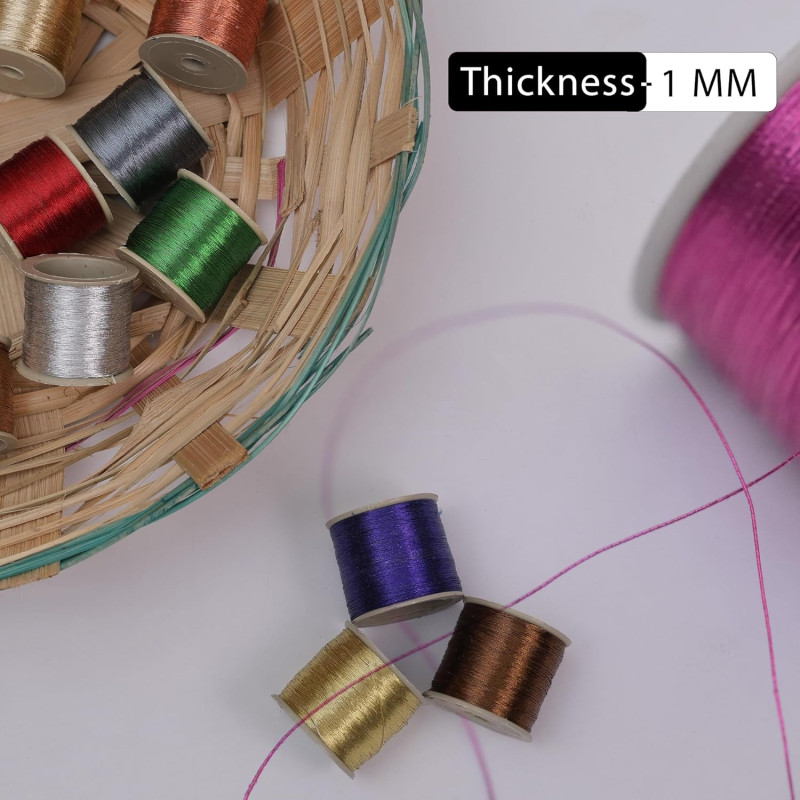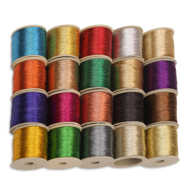 Embroiderymaterial Combo Metallic Zari Thread for Embroidery, Sewing and Jewelry Making, Multicolor | 20 Rolls (Thickness 0.1MM/Length 85Meters)