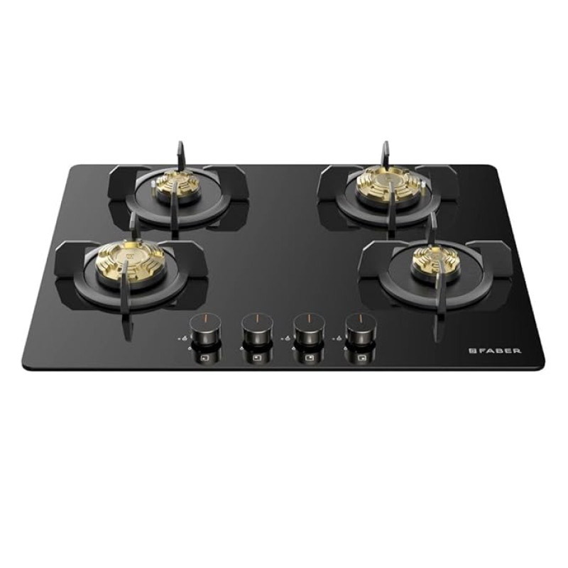 Faber 4 Burner 70Cm HOB |Auto Ignition| HOB PRIME HT704 CRS BR CI AI |Metal Knobs| Cast Iron Pan Support |HOB/Cooktop Hybrid| Black Glass Finish |5 Yrs Warranty On Glass & Valve | 2 Yrs On Burner
