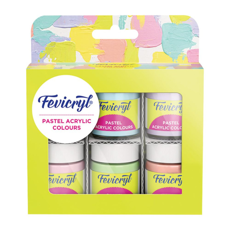 Fevicryl Multi Surface Pastel Acrylic Colours Kit 6 Shades X 15Ml | Ideal For Wood, Glass, Canvas, Metal, Plastic, Mould It | For Hobbyists, Artists, Diy Art And Craft