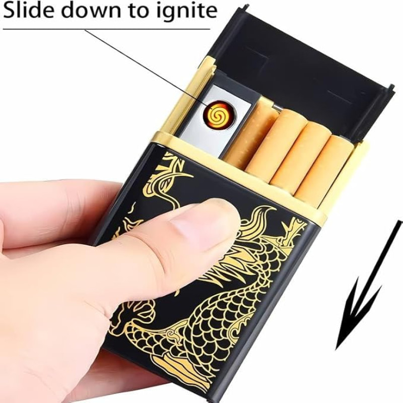 Flamemate Golden Dragon Case USB Rechargeable Electronic Windproof Cigarette Lighter
