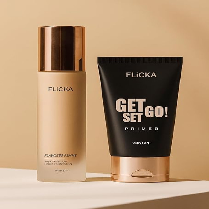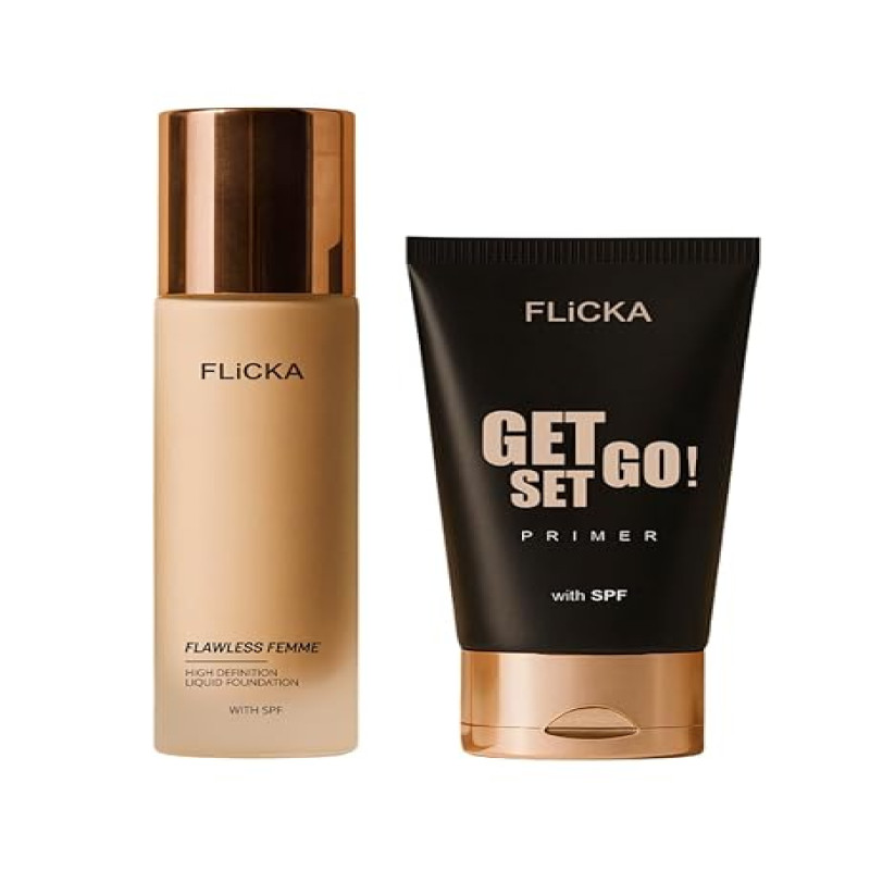 FLiCKA Makeup Kit | Flawless Femme Liquid Foundaion 30ML (Walnut) | Get Set Go Primer 30ML | Make up Combos
