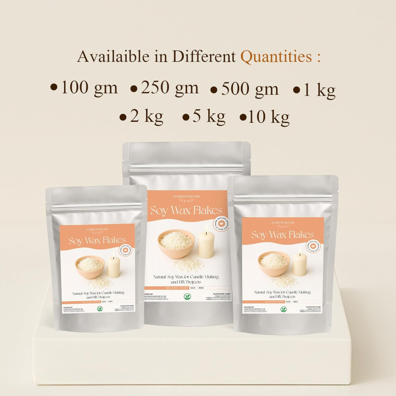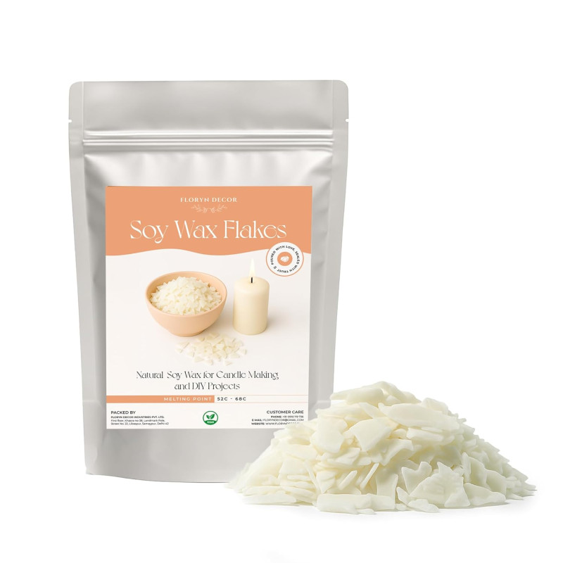 Floryn Decor® - 100% Pure Soy Wax for Candle Making | Natural Soy Wax | Vegetable Wax for Candle Making (Pack of 1 Kg)