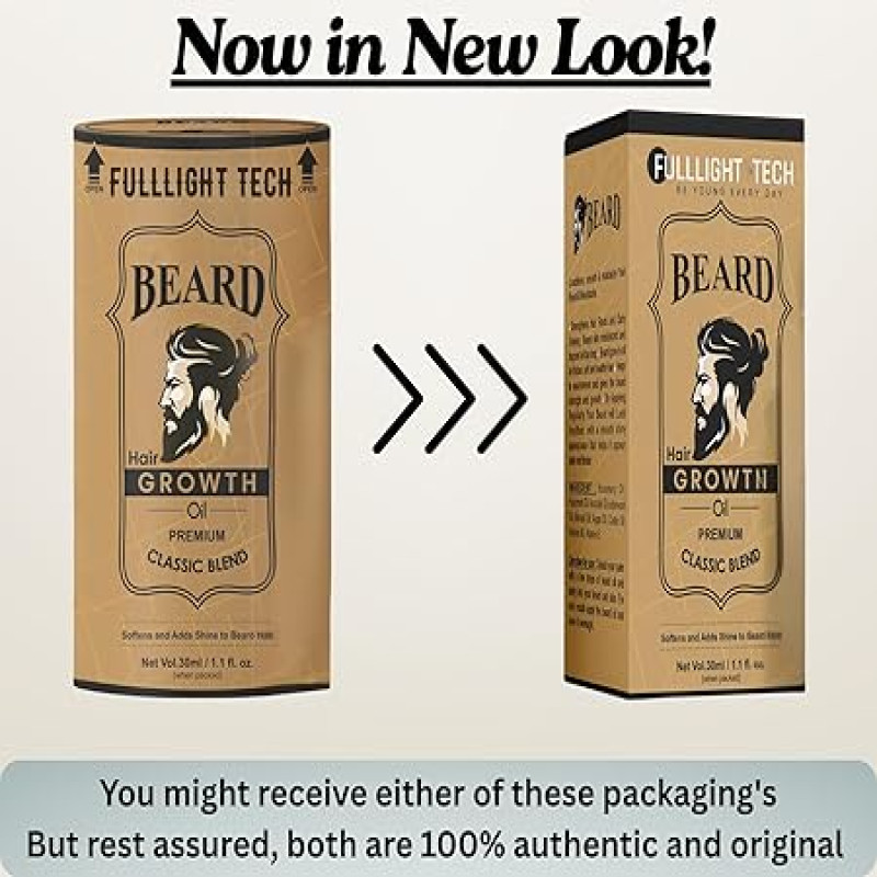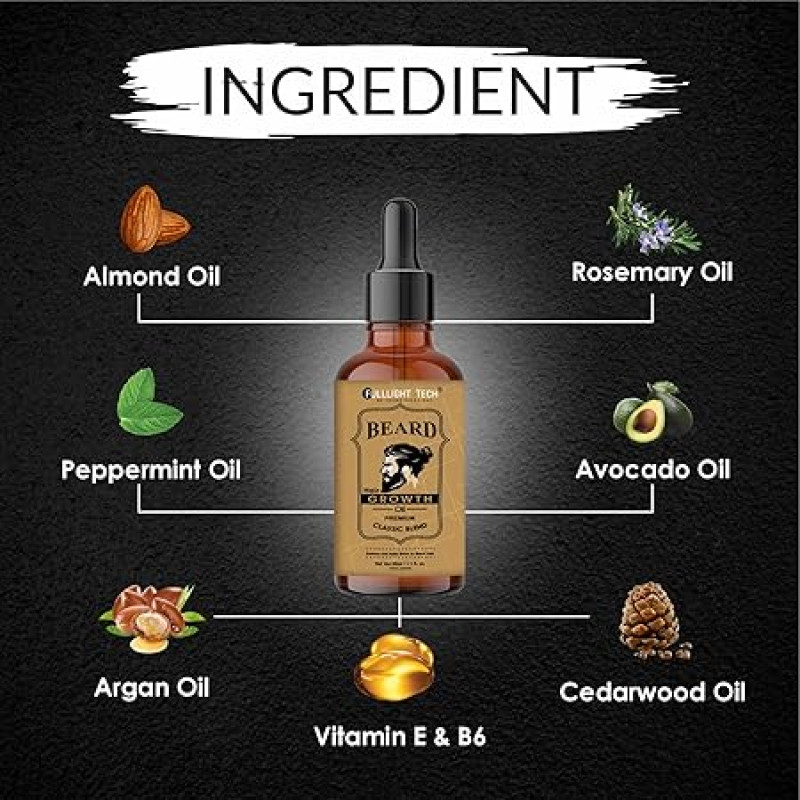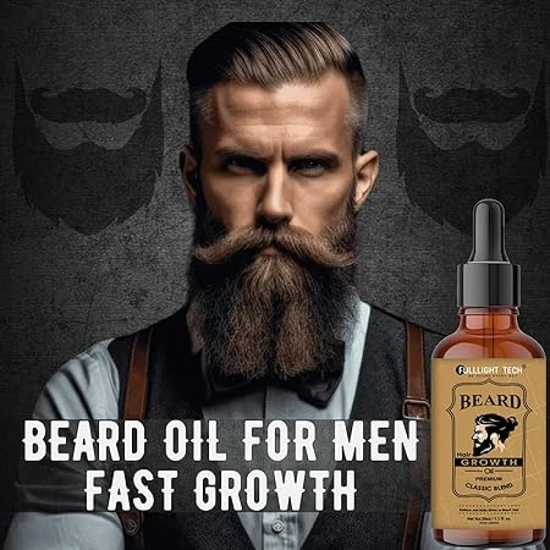 Fulllight Tech Beard Growth Oil for Men-30ml | Natural & Organic Beard Care with Castor, Argan & Jojoba Oils | Promotes Thicker, Fuller Beard | Softens & Fills Patches | Non-Greasy