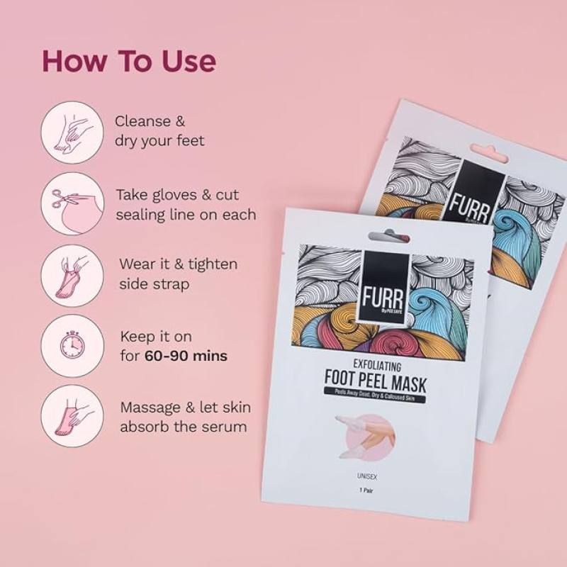 Furr Glycolic Acid & Salicylic Acid Peeling & Exfoliating Foot Mask | Reduces Dry Skin & Hard Calluses| Exfoliates,Moisturizes & Hydrates Feet | Nourishing Foot Mask | Fits Like Socks | Unisex