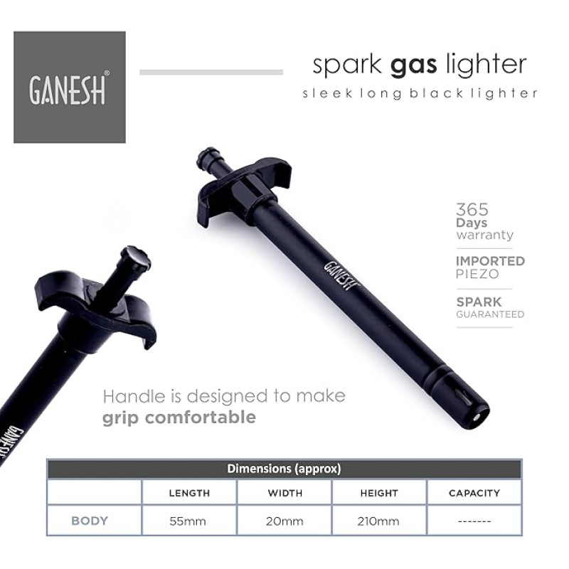 Ganesh Spark Gas Lighter for Kitchen Use Restaurants Metal Gas Stove Lighter Regular Size Easy Grip Long Lasting, Rust Proof