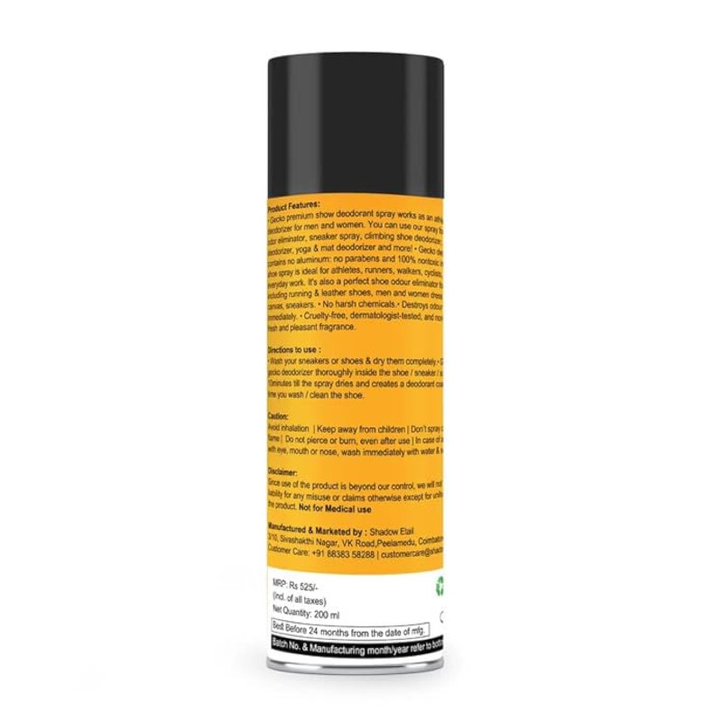 Gecko Shoe Care Combo Kit | Odour Deodorant & Cleaner Spray for Shoes, Sneakers, Sports, Golf, Tennis, Canvas | Anti-Allergic Fresh Formula | 200 ML