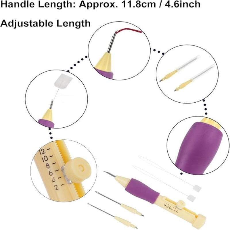 Gemsy Punch Needle Set for Embroidery with 3 Needles & Threaders – Adjustable Embroidery Pen – DIY Needlework Tool Kit for Dimensional, Ribbon, Satin Stitch, and Loop Embroidery