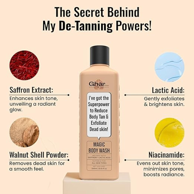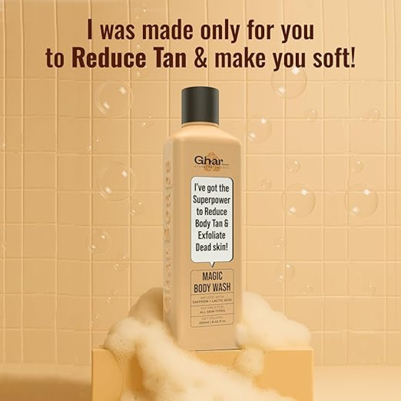 Ghar Soaps Magic De-Tan body wash for tan removal | Exfoliating Body Wash with Saffron, Lactic Acid & Niacinamide | Detan body wash | Removes Tan & Evens Skin Tone | Paraben & SLS Free