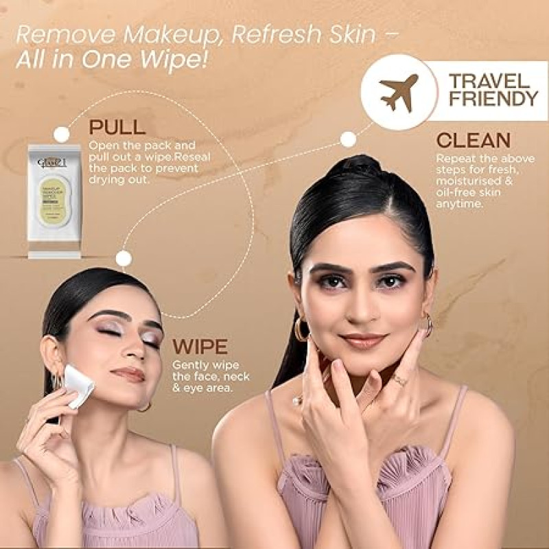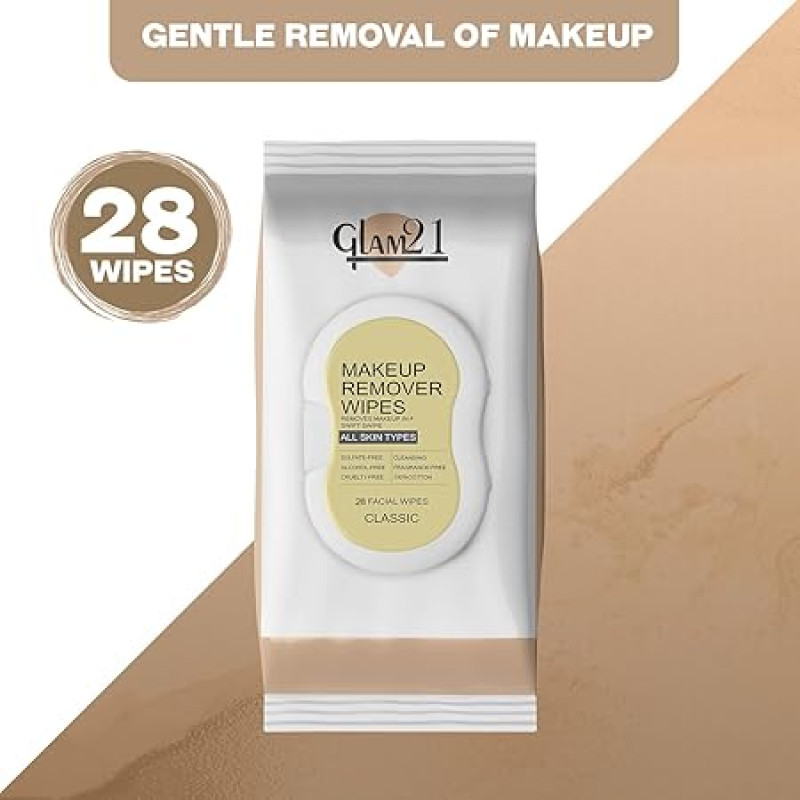 Glam21 Makeup Remover Wipes| Fragrance Free Pre Moisturized 100% Cotton Fabric For Face Cleansing| Hydration and Refreshment | Suitable For All Skin-28pc | Classic
