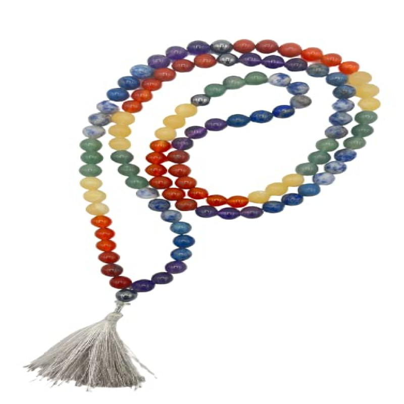 GOLDEN QUARTZ - THE CRYSTAL HUB - 7 Chakra Mala Certified Natural Crystal Gemstone Prayer Bead 8mm 108 Beads Jap Mala for Meditation, Pooja, Chanting, Wearing with Certificate (8mm, 7 Chakra)