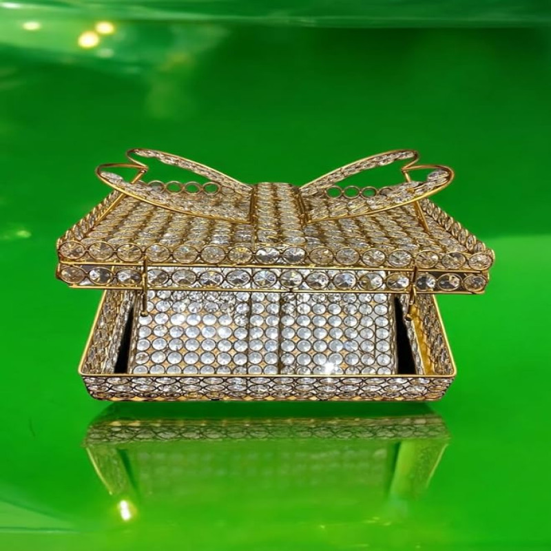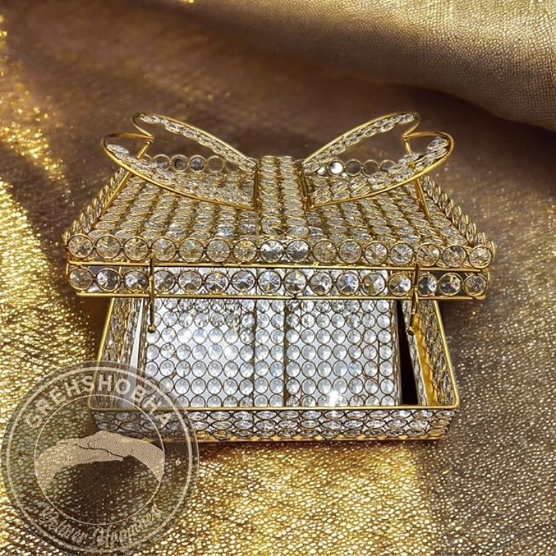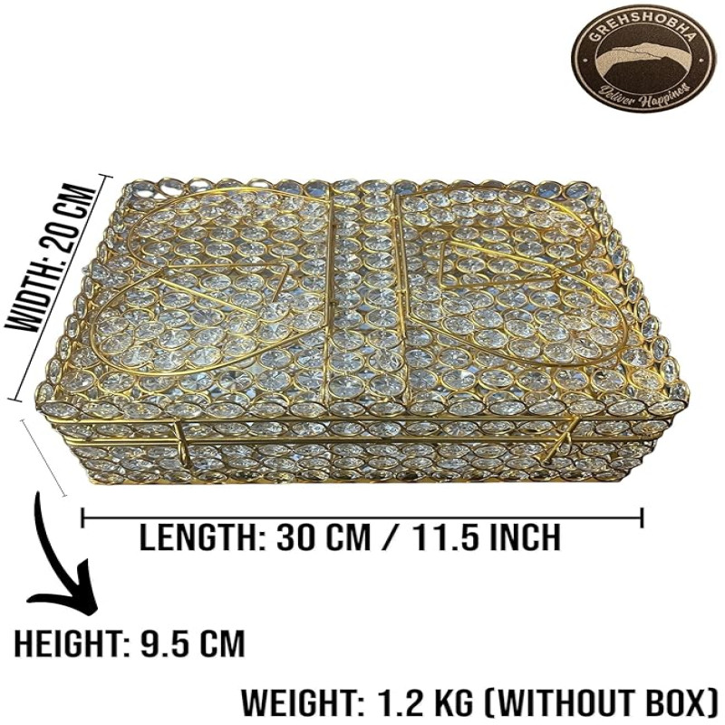 GREHSHOBHA Iron Frame Holy Quran Sharif Book Reading Holder Rihal Stand | Golden Toned with Crystal Glass Beads | Quran Holder for Bride & Gifting Purpose | Size: 12 Inch, Pack of 1