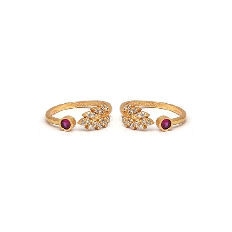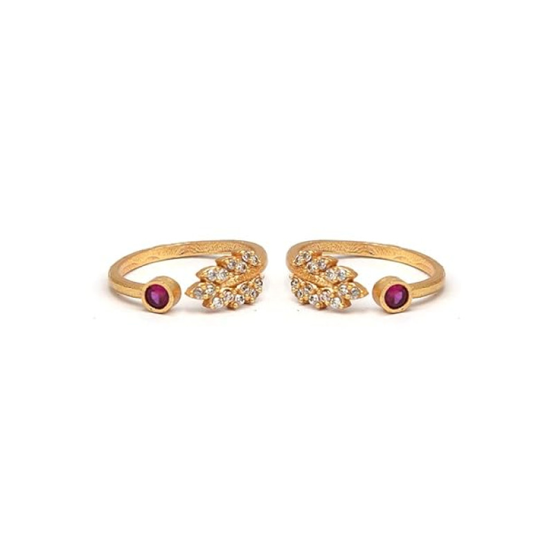 GRESHA Gold Plated Brass Bridal Jewellery of Traditional Ethnic Adjustable Toe Rings for Women