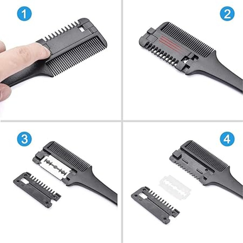 Hair Line Professional Unisex Multi-Functional Single Blade Razor Comb for Hair Thining/Trimming, Hairdressing Cutting Tool For Salon n Home Use_Black