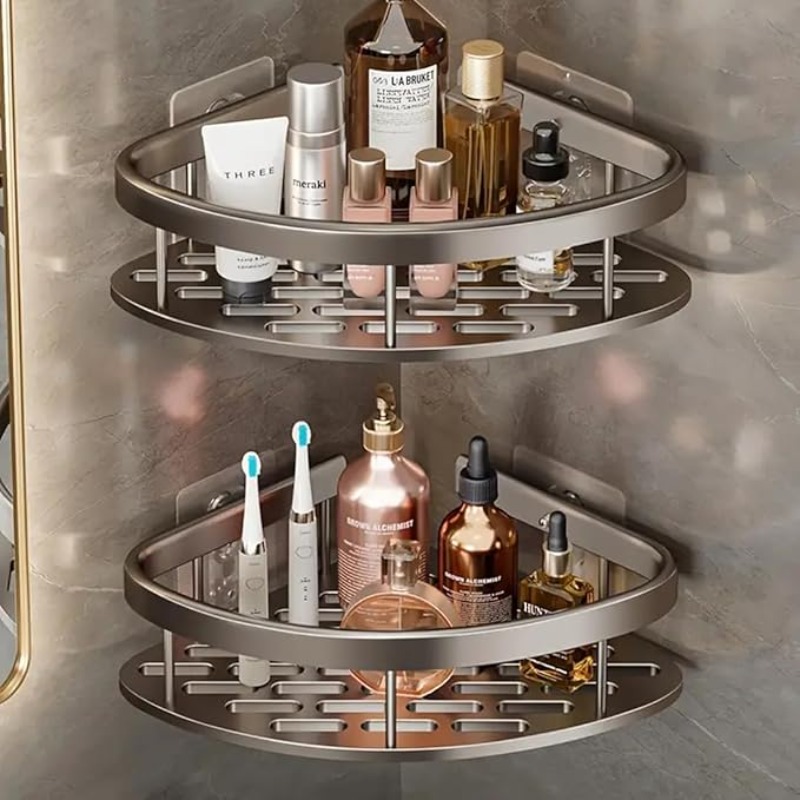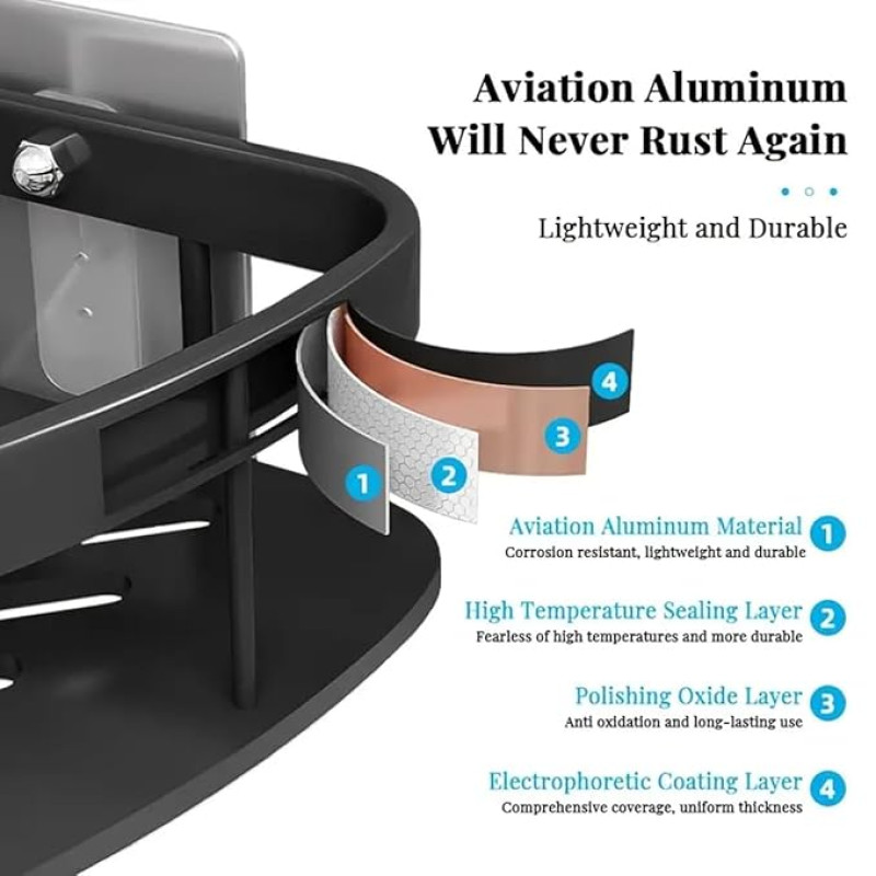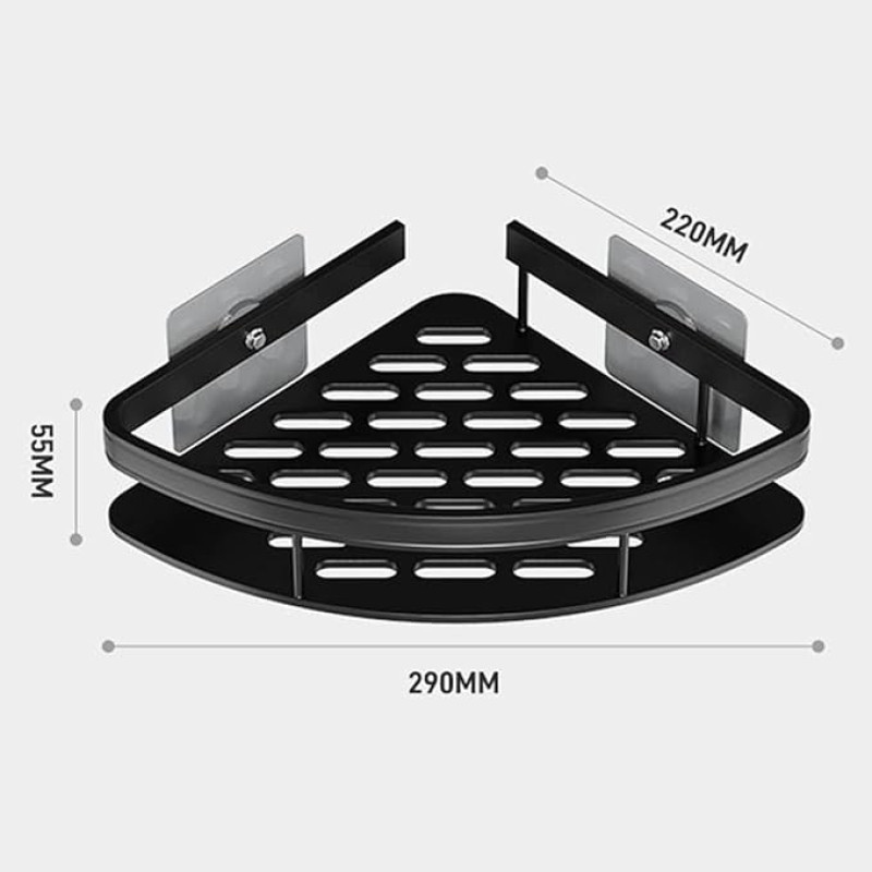 Hallstatt Self Adhesive Bathroom Corner Shelf for Wall Shelf Organizer Wall Mounted Aluminum Bathroom Shelves Rack Holder Stand for Bathroom Organiser Without Drill Accessories (Black,Pack of 2)