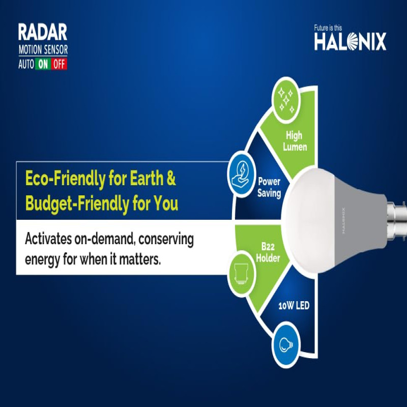 Halonix 10W Radar Motion Sensor B22D Led Bulb, Auto On-Auto Off, Pack Of 1, White