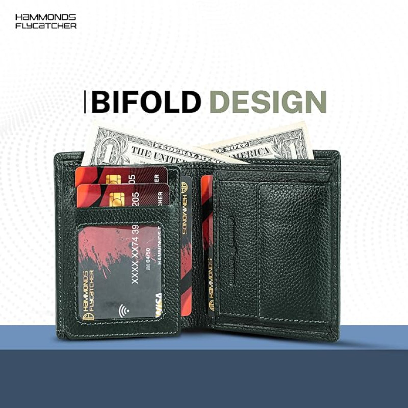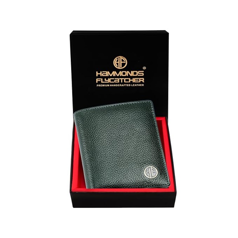 HAMMONDS FLYCATCHER Wallet for Men Leather Original, Mens Wallet, Leather Wallets for Men Stylish, Bi-Fold Wallets for Man, 3 Card Slots, 2 ID Slots, Coin Pocket, Gift for Mens - Green