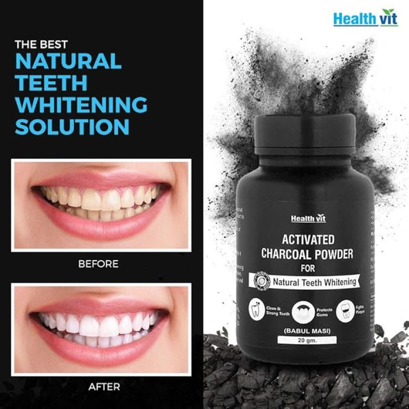 Healthvit Activated Charcoal Powder for Teeth Whitening - 20gm | Teeth Whitening Charcoal Powder | Bad breath remover | Enamel Safe Teeth | Oral hygiene products | Healthy Gums