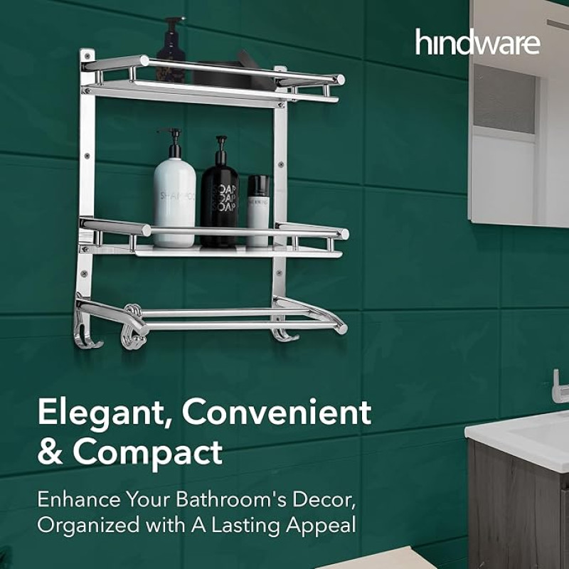 Hindware Bathroom Accessories 3-Layer Multi-Purpose Shelf | Made of Stainless Steel | Foldable & Convenient | Space Saving