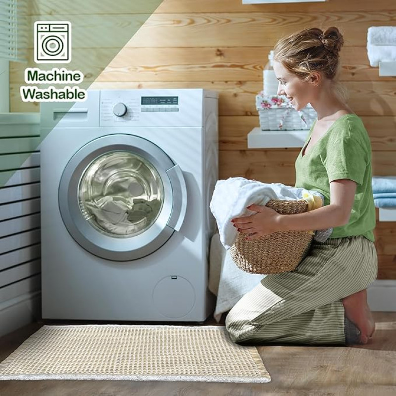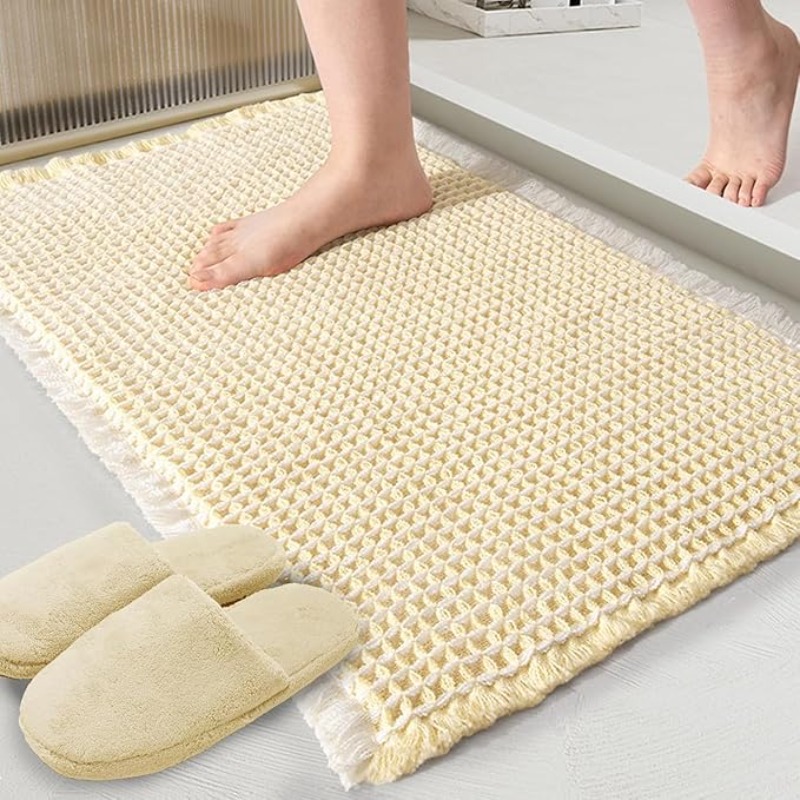 HomeCloud Waffle Bath Mat, Super Absorbent Non Slip Bath Mats for Bathroom Floor, Machine Washable Bathroom Rugs with Tassels,Bathroom Mats,Ultra Soft (Cream)