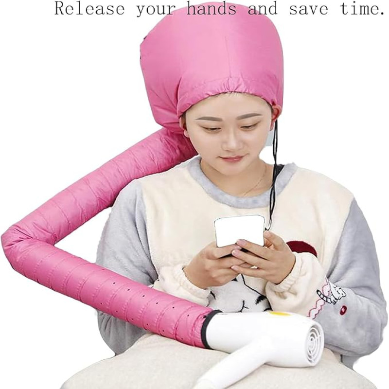 Hooded Hair Dryer Soft Bonnet with Integrated Headband, Reduces Heat Around Ears & Neck, Hair Dryer Diffuser Cap for Curly Hair, Speeds Up Drying Time, Safe Deep Conditioning at Home, Portable and Large Size