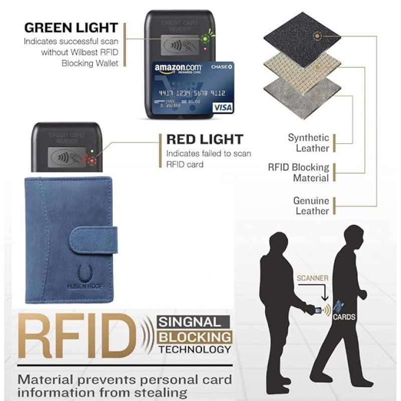 Husk N Hoof RFID Protected Leather Credit Card Holder Wallet for Man Women | Card Holder for Men Woman | Blue (20 Card Slots)
